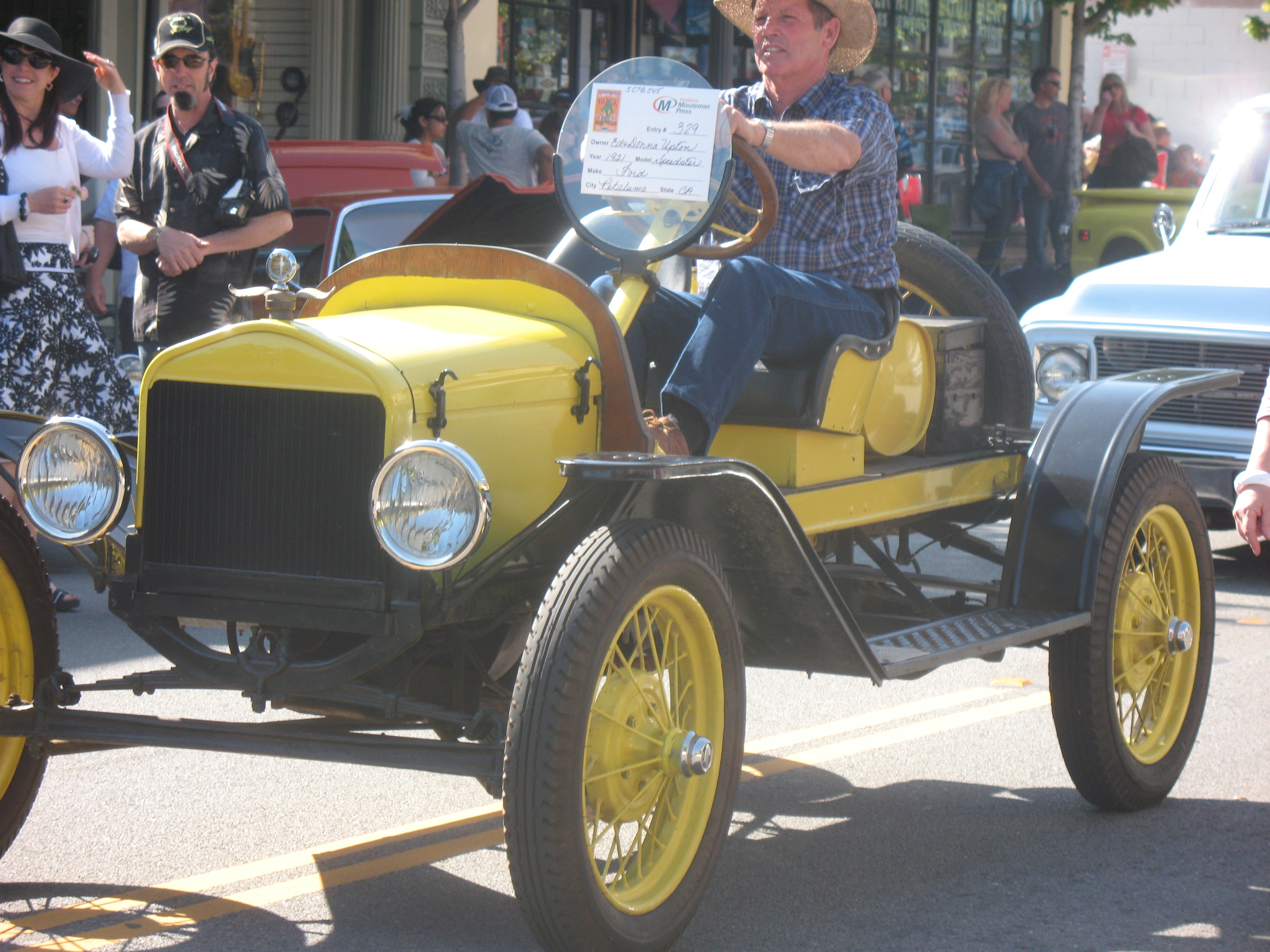 All these old cars were working fine, but a newer car wasn’t. On the way out of Petaluma, there was a young man in a Honda Civic hatchback. He was in the middle of the intersection when it stalled! He kept jamming the tranny into reverse, 1st gear, reverse, 1st gear… Well, you get the idea.
