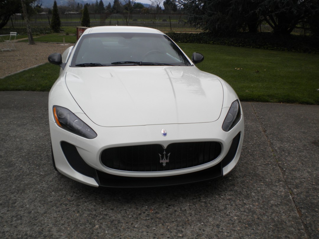 So, the reason that I was playing hooky Friday is because my dad got an invitation from Maserati of San Francisco, CA to drive their full line of cars!  I guess they made a mistake!  Apparently, we have $240,000 to throw at a Gran Turismo MC. . .One can only hope. . .Anyway, we went to the beautiful property of Raymond Winery in St. Helena, and started out in a smokin’ Royal Blue Maserati Gran Turismo.  Our driving route consisted of going pretty far up Sage Canyon from the Silverado Trail to Lake Hennessey, a local lake on the way up to Lake Berryessa.  On the first (of many) blind curves on the canyon, we almost hit some random guy in a Nissan Altima rental car dropping his girlfriend off (on a busy 2 lane road, on a blind curve).  I was in the front seat while my little sister, and the driving instructor were in the back (with next to no room).  My dad hit the brakes, downshifted with the paddle shifter and swerved.  All while hitting the horn.  Nice multi-tasking, dad!  As soon as we saw a good stretch of straight road, Jeff, our personal race driving instructor had my dad put the Gran Turismo in “Sport” mode.  Immediately, the car got much, much louder as a result of the exhaust opening up.  Then, we felt a tremendous power rush of both horsepower and torque.  We shot up to about 70 mph in about three seconds.  Then, there was a curve.  Even though the suspension of the Gran Turismo is mildly hard, the Gran Turismo MC is harder, yet rides as smooth, just with more road feel.