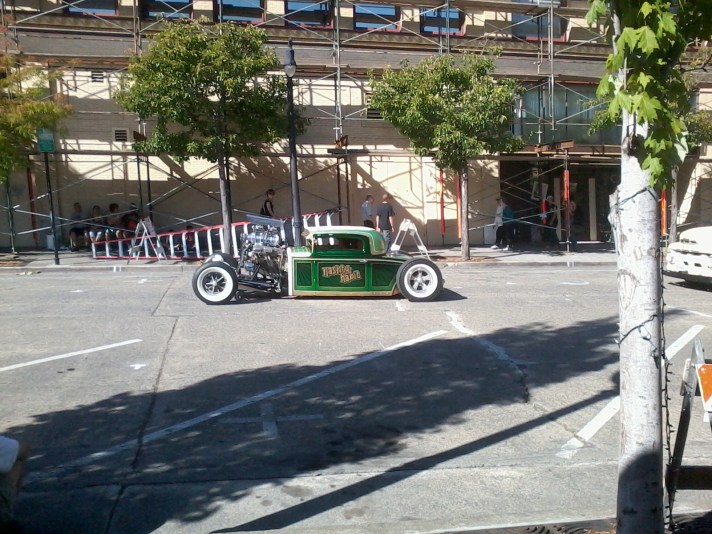 My cover photo of “Nashty Habit” is higher-resolution than this picture, but here’s the info: Nashty Habit has a 454 engine from a souped-up Chevelle and a five-speed manual from G-d knows where. The wheels are custom-forged, and the body and chassis are from a 1931 Nash.