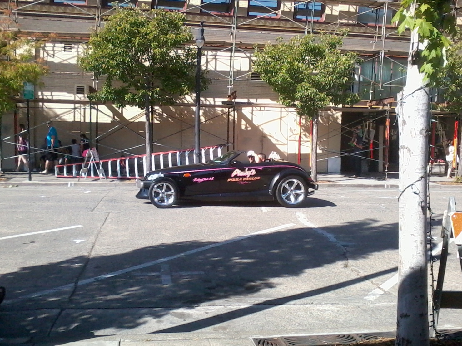 Please DON’T ask me WHY this 1995 Plymouth Prowler was in the parade! My guess is that it is NOT a delivery vehicle, but simply an advertising piece for the pizza parlor! I don’t know HOW “Pinky” got the car into the parade!
