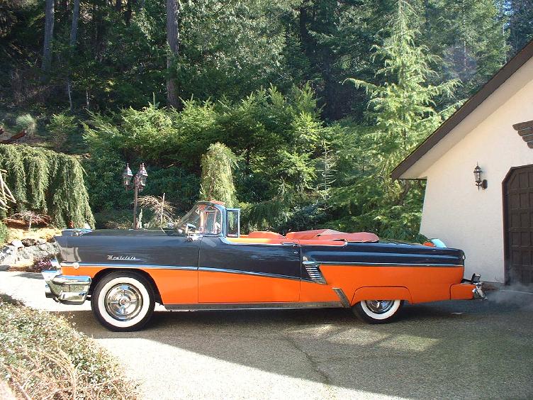 This amazing 1956 Mercury Montclair Convertible is London Grey and Persimmon. Ted found what was left of it in the Spokane area, restored it, and then drove it to the 1996 Hot August Nights in Reno, Nevada. She has full power, and is loaded to the gills with every single accessory available for 1956 Mercury Montclair’s.