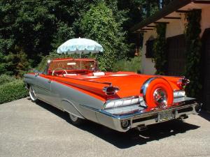Ted looked for one of these 1958 Mercury Convertibles for about ten years before buying this one from John Fowlie in California. Ted and Sharon restored it with a HUGE 430 CI engine, memory seats, and many other BIG parts! Everything about her is big!